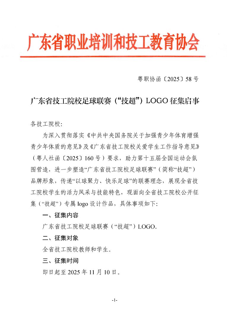 广东省技工院校足球联赛(“技超”)LOGO 征集启事(粤职协函〔2025〕58 号)