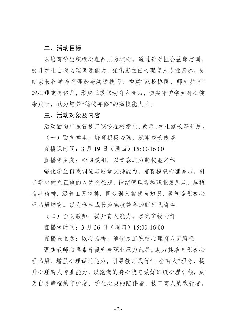 关于开展2026年广东省技工院校春季学期心理健康公益课的通知