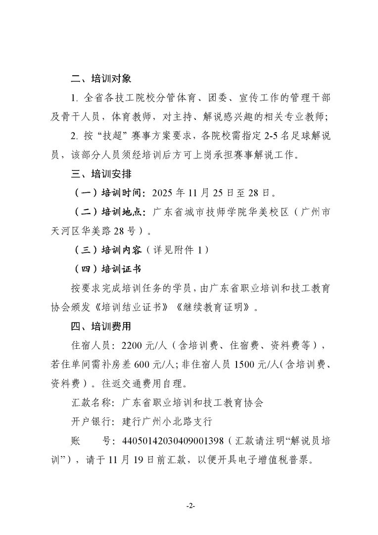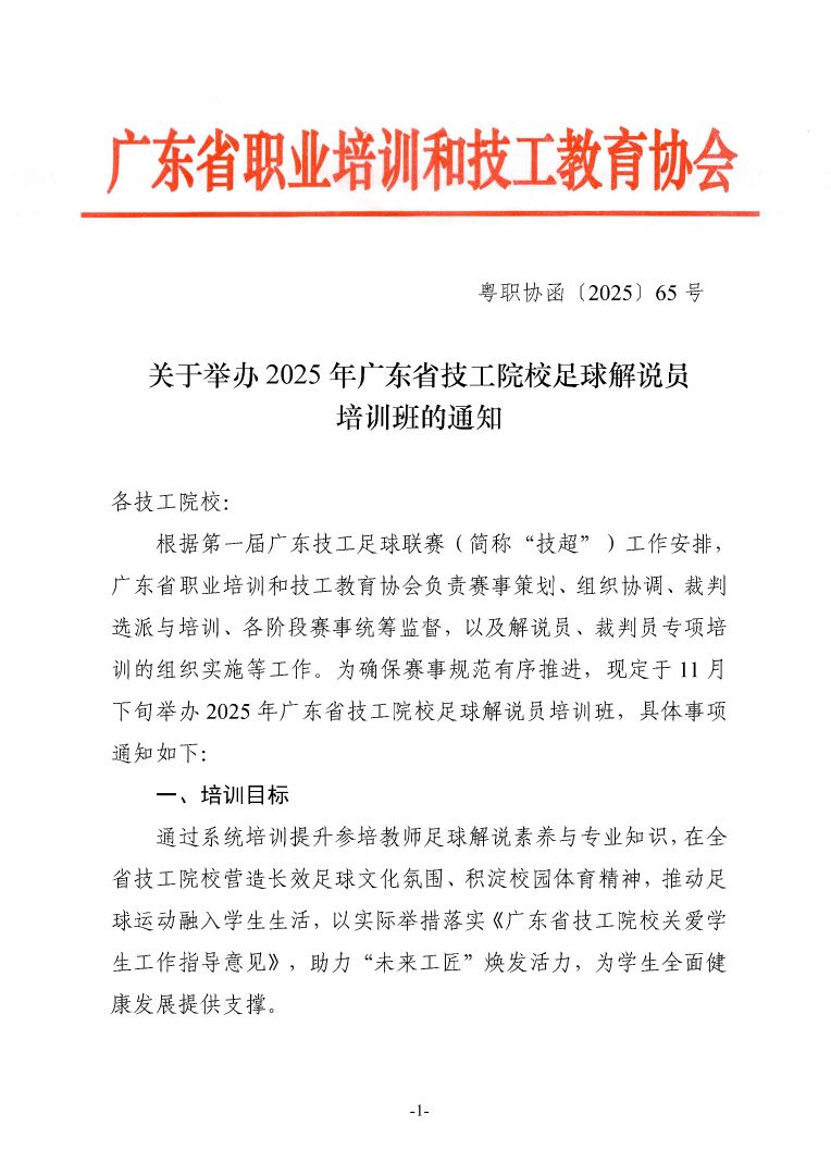 关于举办2025 年广东省技工院校足球解说员培训班的通知(粤职协函〔2025〕65 号)
