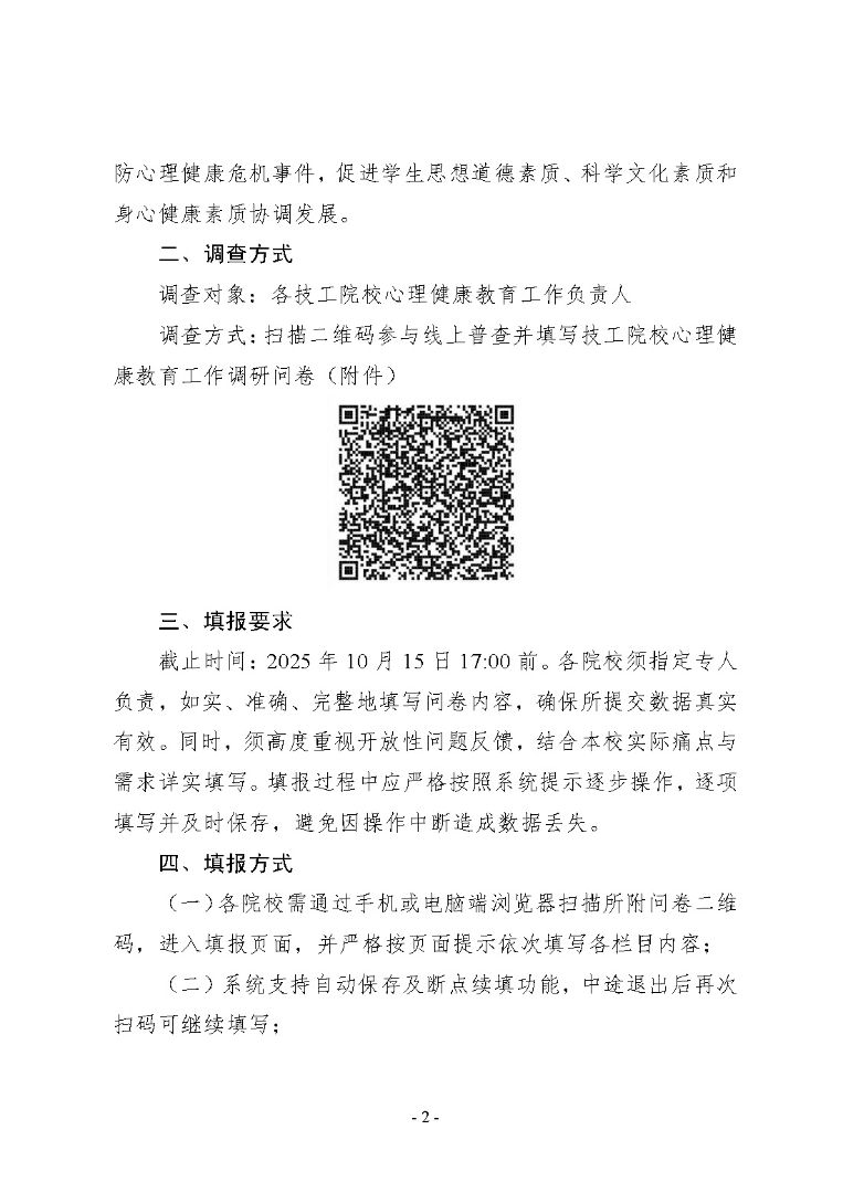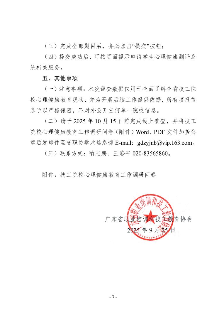 关于开展全省技工院校心理健康教育工作问卷调查的通知(粤职协函〔2025〕52 号)