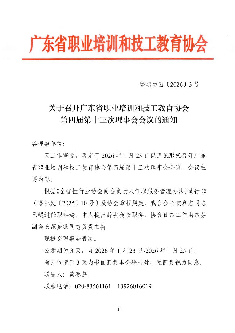 关于召开广东省职业培训和技工教育协会第四届第十三次理事会会议的通知