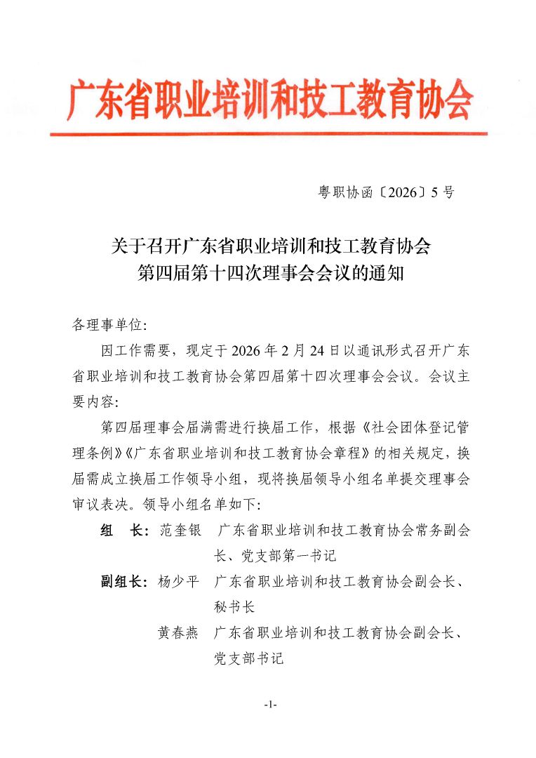 关于召开广东省职业培训和技工教育协会第四届第十四次理事会会议的通知