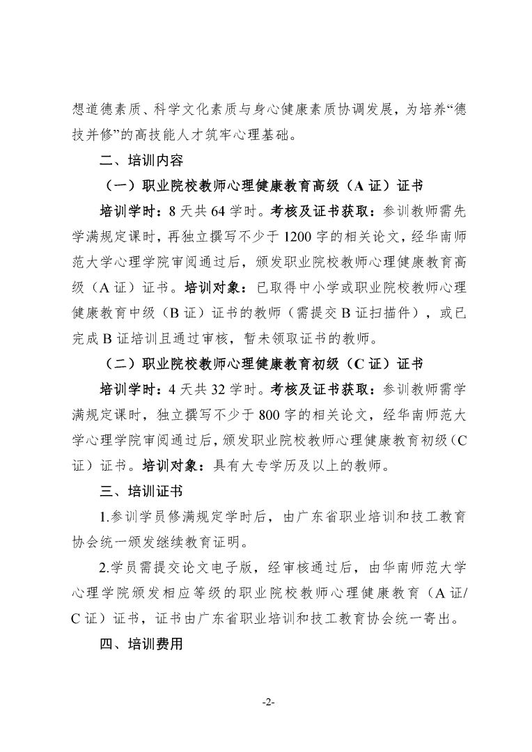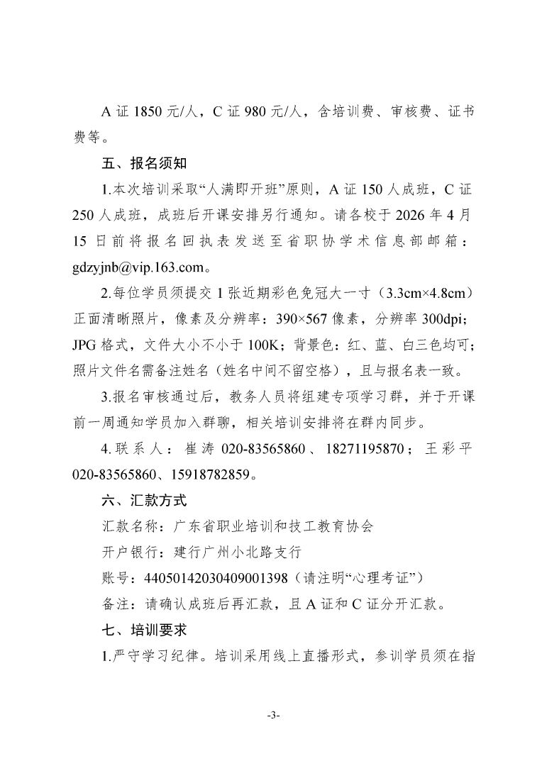 关于开展2026 年春季广东省技工院校教师心理健康教育A 证、C 证培训及考证的通知(粤职协函〔2026〕12 号)