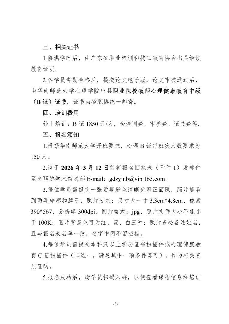 关于2026 年广东省技工院校教师心理健康教育中级(B 证)证书培训及考证开课的通知