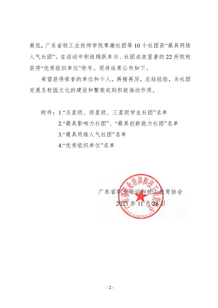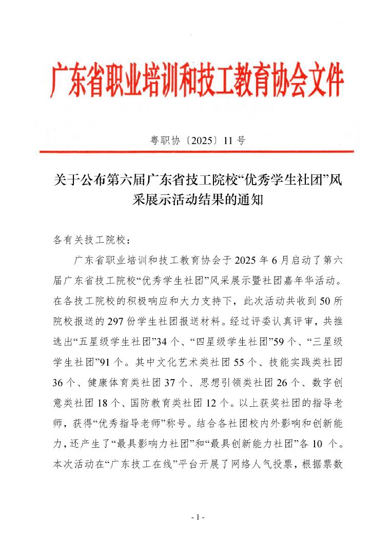 关于公布第六届广东省技工院校“优秀学生社团”风采展示活动结果的通知(粤职协〔2025〕11 号)
