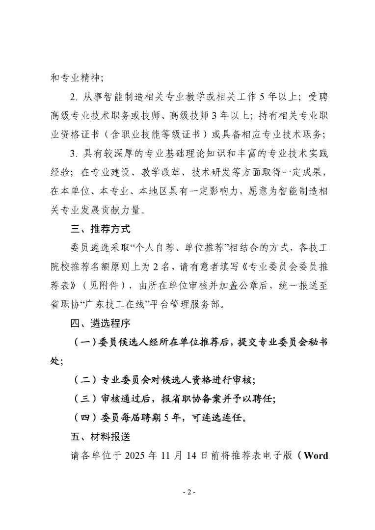关于广东省职业培训和技工教育协会智能制造专业委员会换届遴选的通知(粤职协函〔2025〕59 号)